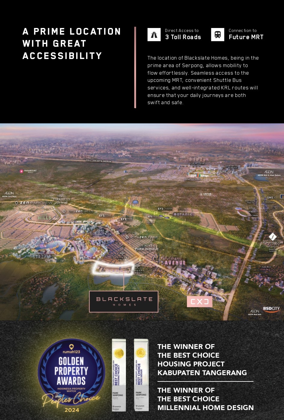 Blackslate Homes Park Serpong, Sempurna dalam Keanggunan yang Berani. Dibalut Kemewahan Modern. BLACKSLATE HOMES adalah rumah ideal untuk keluarga Anda dengan peningkatan pengalaman hidup dalam rutinitas harian Anda.