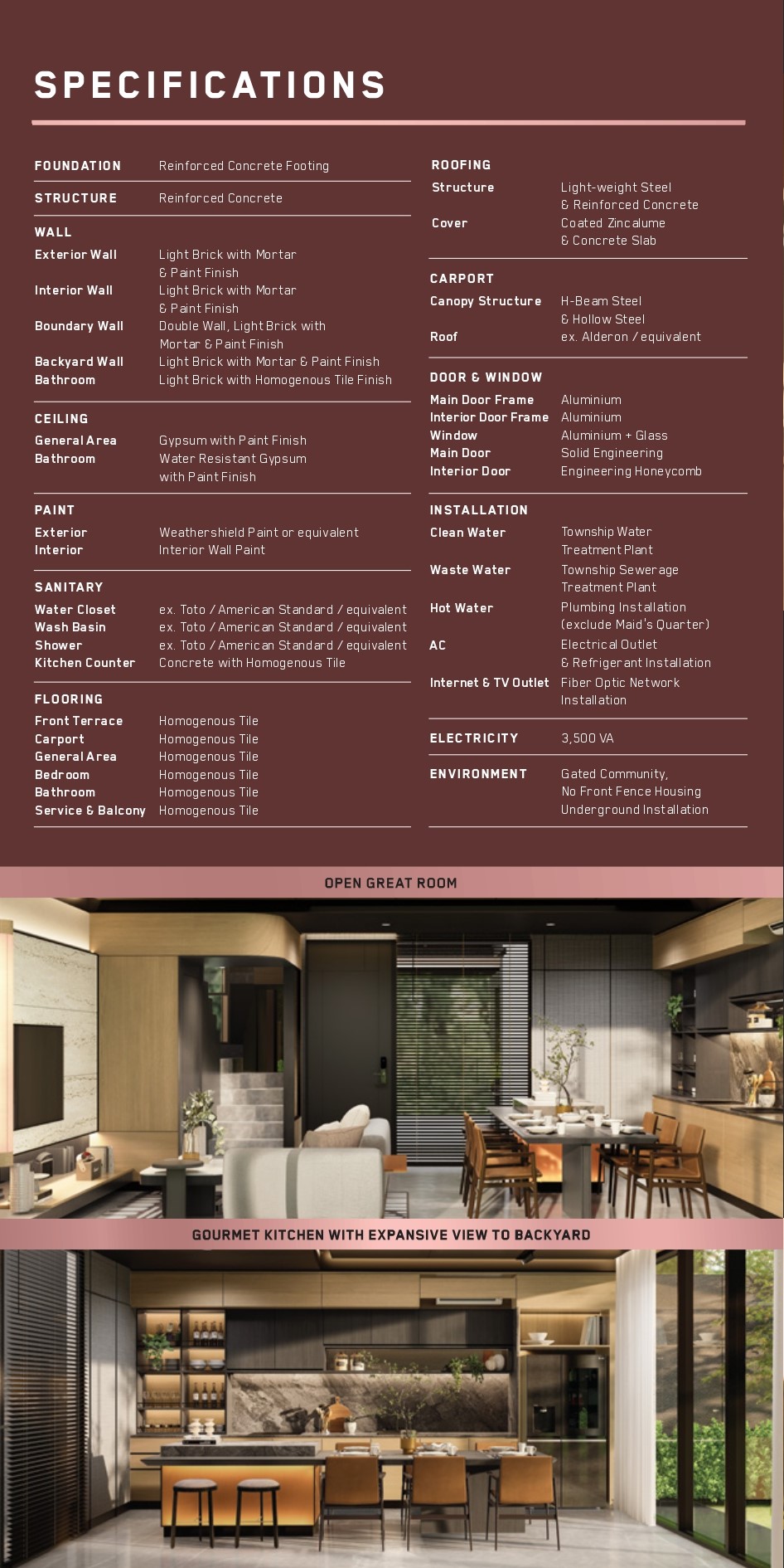Rumah Abadi yang Luas untuk Anda keluarga berharga dengan Desain Elegan yang Berani. Rumah Premium 4 Kamar Tidur dengan 3,5 Kamar Mandi dengan Ruang Tamu, Ruang Makan & Dapur terbuka yang dimilikinya pemandangan luas ke Private Paradise Resort Halaman belakang. Lengkap dengan Maid’s Quarter dan Carport Tertutup untuk 2 mobil, semua kebutuhan Anda terpenuhi.